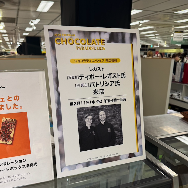ティボー・レガスト氏とパトリシア氏が来店します。 ◎ショコラティエ・シェフの2人がこの催事のために来日します。 日時:2月11日(水・祝)午後4時〜5時 場所:横浜SOGO 8階 催会場(LEGAST レガスト売り場) https://www.legastchocolatier.com/home